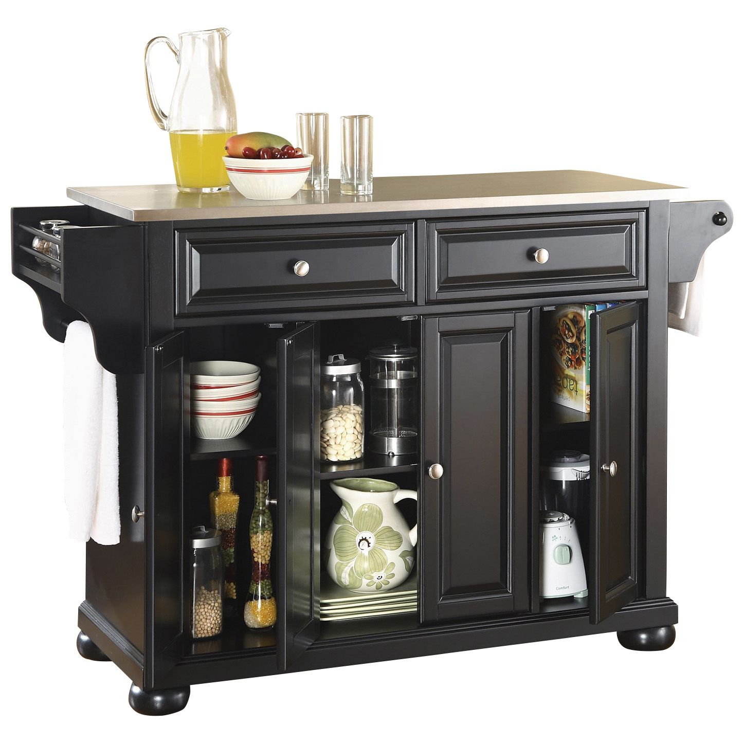 Crosley kitchen islands and carts feature sophisticated designs to complement any space, as well as organizational extras like spice racks and wine storage to keep choice essentials within reach. Get 5% in rewards with club o! Glitzhome wood rolling kitchen cart with marble top kitchen island storage trolley utility cart rack with storage drawers/open shelves/baskets dining stand, black 3.8 out of 5 stars 24 $160.98 $ 160. Sold and shipped by spreetail. Crosley cambridge kitchen island with stainless steel top in white.